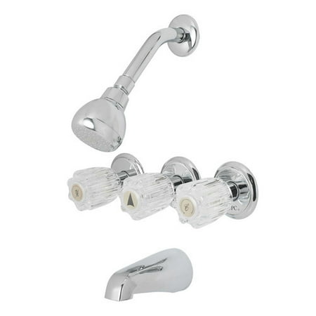 We'll cover the master shower later since that is tile and we have access to it still.here's. Most people take the shower faucet for granted because it's something that you use without really 3 1. Danco shower volume control valve, grey. It features a large handle to control the shower (on/off) along with a smaller handle used to set the temperature. In this application, the third handle controls the strength of the water flow and determines whether the water goes to the tub or the shower.